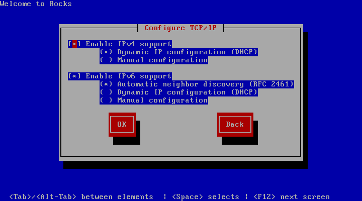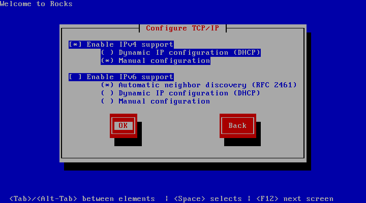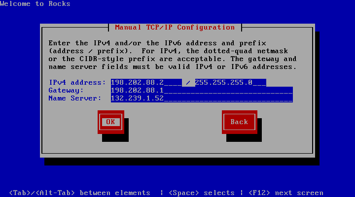 ![]() | All screens in this step may not appear during your installation. You will only see these screens if there is not a DHCP server on your public network that answers the frontend's DHCP request. |