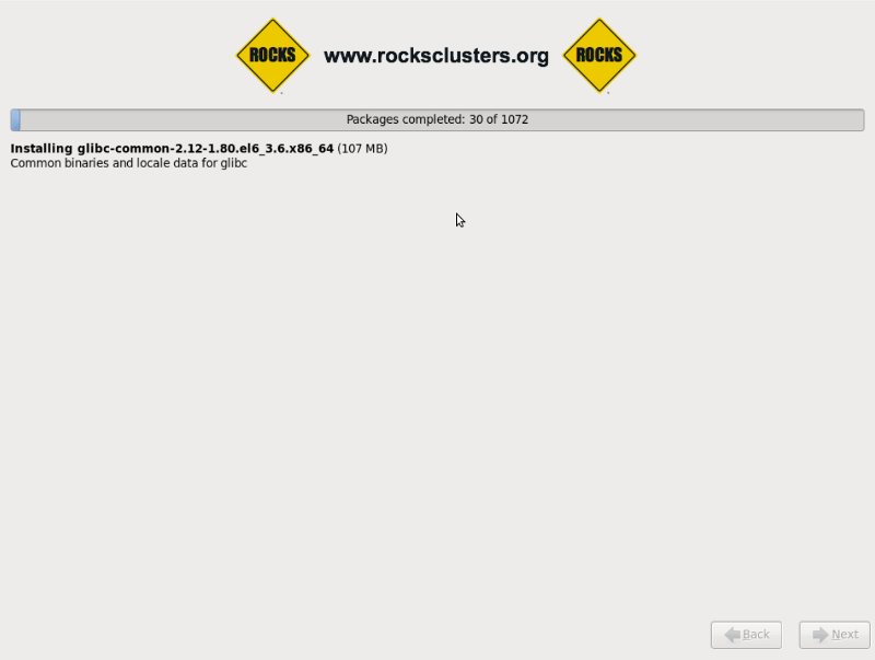The frontend will format its file systems, then it will ask for each of the roll CDs you added at the beginning of the frontend installation.