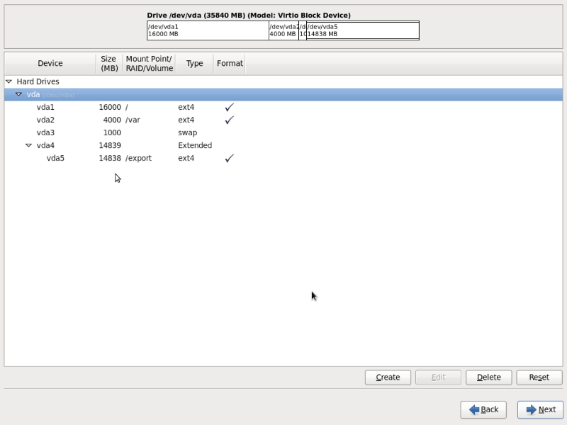 Above is an example of creating a '/', '/var', swap and '/export' partitions.